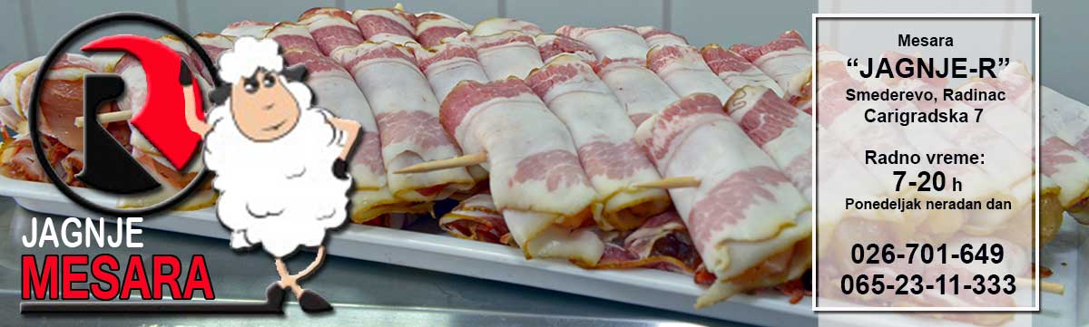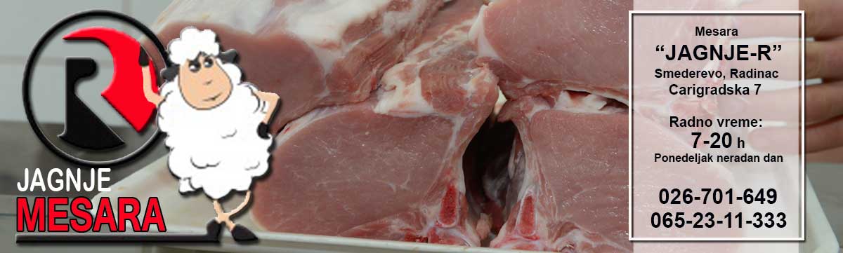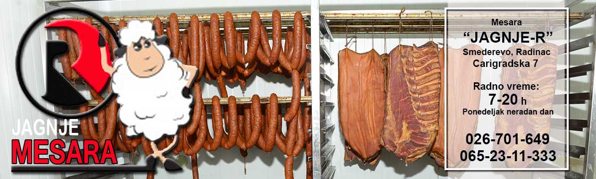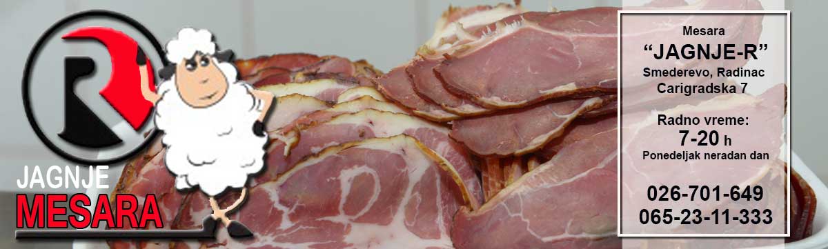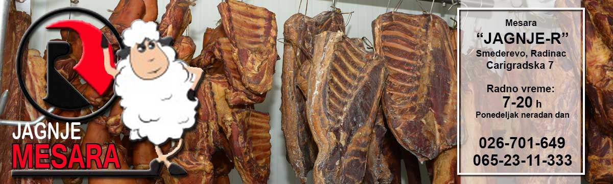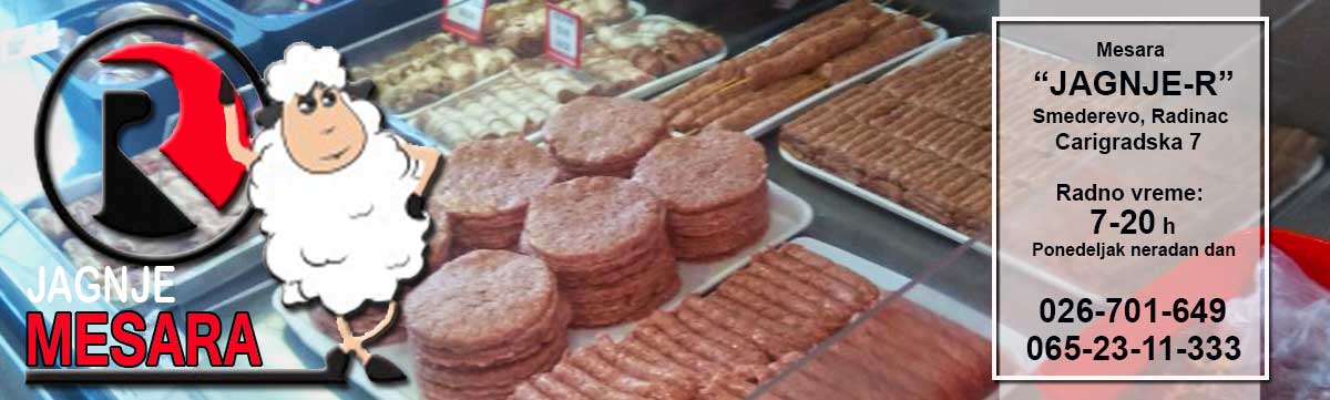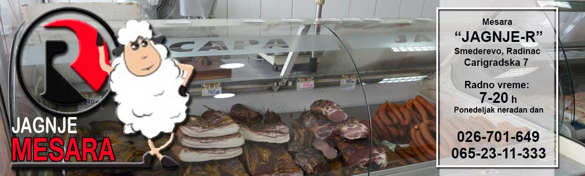 Dobrodošli na sajt mesare "Jagnje-R" iz Smedereva. Ovih dana ulazimo u desetu godinu uspešnog poslovanja. Našim kupcima nudimo najkvalitenije meso, isključivo od domaćih proizvođača, kao i suhomesnati program, proizveden na tradicionalan način.